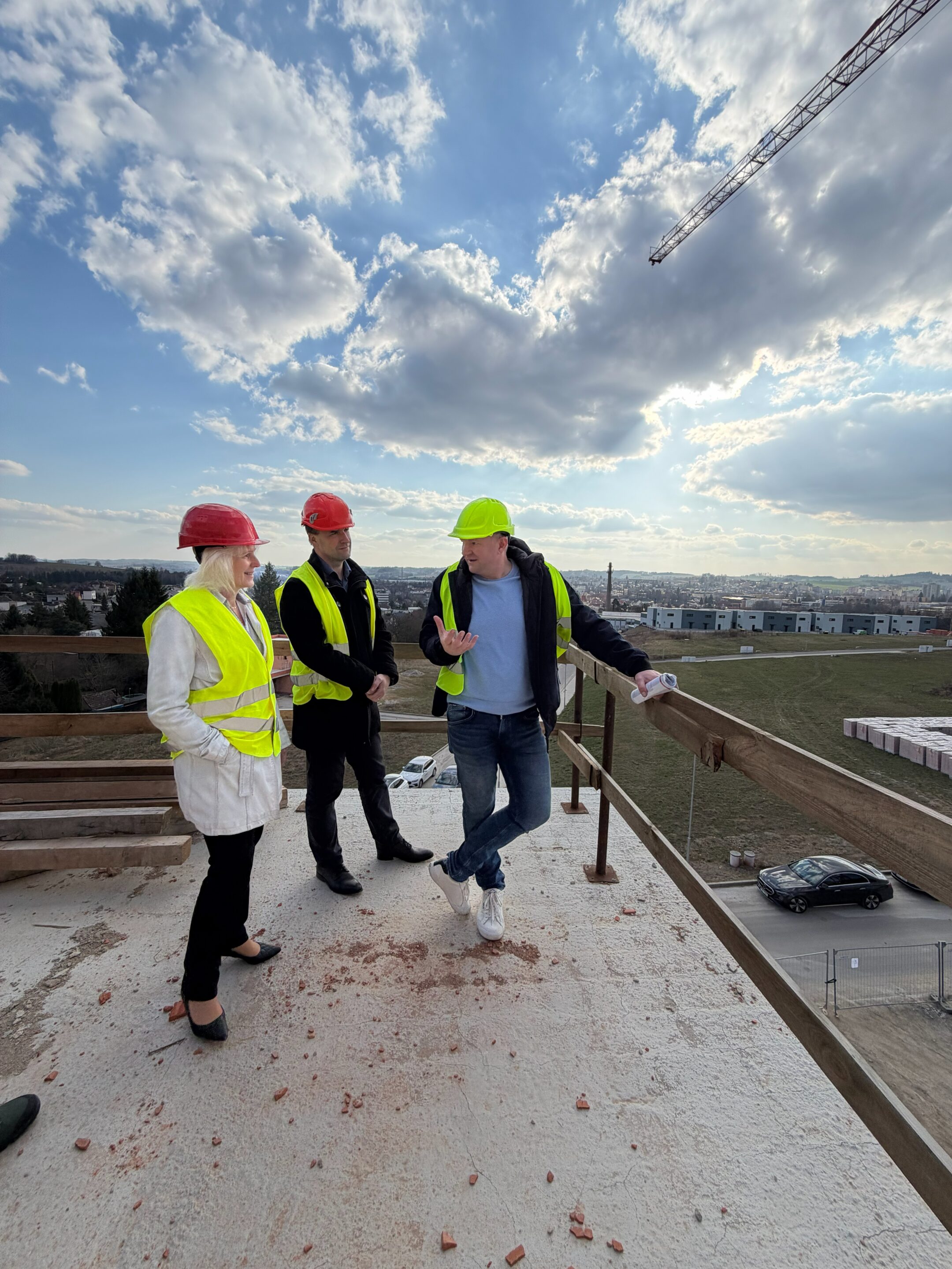 V uplynulých dnech jsme na našich stavbách Byty Zelený vrch a Terasové domy přivítali vzácného hosta, hejtmana Kraje Vysočina, pana Martina Kuklu. Návštěva proběhla v duchu konstruktivního dialogu o aktuálním stavu a budoucnosti regionálního bydlení.